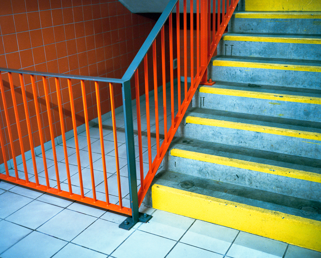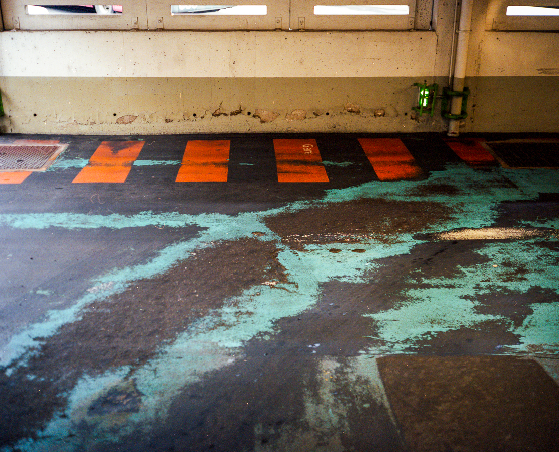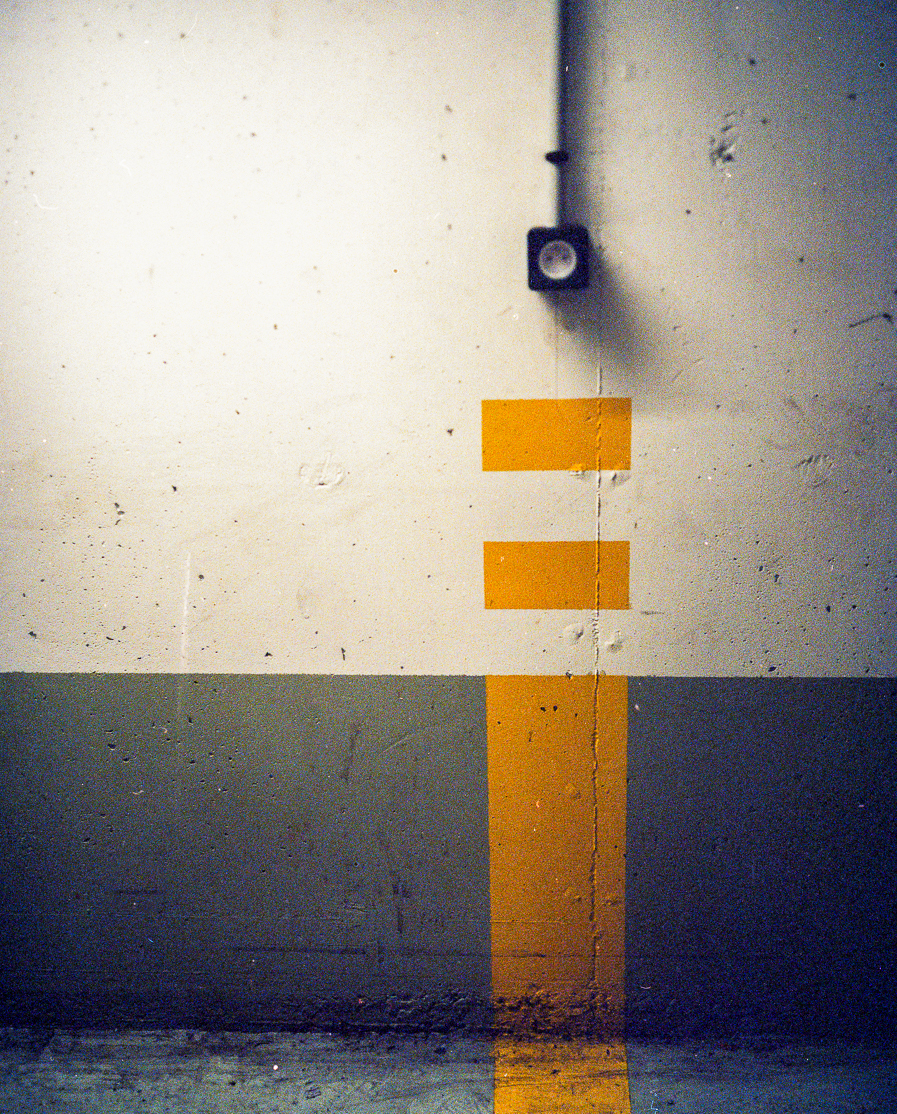 Les parkings souterrains, on y gare sa voiture, on y repart, et on revient la chercher pour en ressortir. Rien de bien excitant la dedans, ou plutôt la dessous. Pourtant je trouve les couleurs utilisées pour différencier les étages, les sorties, les ensembles de places, intéressantes. L’usure sur le sol par les milliers de pneus et les taches laissées par quelques moteurs mal réglés sont des traces qui rendent vie à ces espaces qui en sont souvent dépourvus.